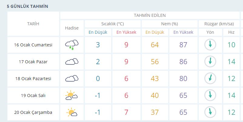 Yağışların pazartesi günü duracağı ve Çarşamba gününe kadar kuru soğuğun kent genelinde etkili olacağı öngörülüyor. Hava sıcaklığının 0’ın altına inmesi sebebiyle çiftçilerin zirai don riskine karşı önlem alması gerekiyor.