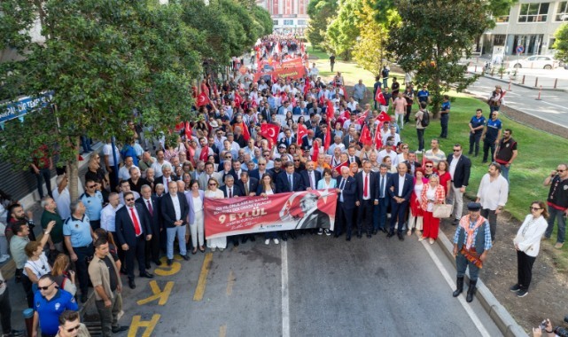 İzmir'de kurtuluşun 102'nci yıl dönümü kutlamaları kapsamında 9 Eylül Zafer Yürüyüşü düzenledi. Türk ordusunun 9 Eylül 1922'de İzmir'e girerken kullandığı güzergah üzerinde düzenlenen yürüyüş, Basmane Karakolu önünden Cumhuriyet Meydanı'na kadar devam etti. Yürüyüşe İzmir Büyükşehir Belediye Başkanı Dr. Cemil Tugay'ın yanı sıra CHP, AK Parti, MHP, İYİ Parti, Demokrat Parti milletvekilleri, siyasi parti temsilcileri, ilçe belediye başkanları, meclis üyeleri, bürokratlar, iş dünyası, sivil toplum örgütlerinin temsilcileri ve binlerce İzmirli katıldı.Tugay: Duyguluyuzİzmir Büyükşehir Belediyesi'nin hazırladığı 350 metre uzunluğundaki Atatürk posterini taşıyan katılımcılar Anafartalar ve İkiçeşmelik caddeleri üzerinden ilerledi. Yürüyüş coşkusu Cumhuriyet Meydanı'na kadar devam etti. Marşlar eşliğinde yürüyen korteje, vatandaşlar da alkışlarla eşlik etti. Duygularını aktaran İzmir Büyükşehir Belediye Başkanı Dr. Cemil Tugay, “Çok güzel bir yürüyüş gerçekleştiriyoruz, duyguluyuz. 102 yıl önceki büyük zaferin gururunu hala yaşıyoruz. Gün boyunca etkinliklerle kutlamaya devam edeceğiz. Bu yürüyüş başlangıç” dedi. Ata'ya çelenk sunulduCumhuriyet Meydanı'nda son bulan yürüyüşün ardından İzmir Valisi Dr. Süleyman Elban, Ege Ordusu ve Garnizon Komutanı Orgeneral İrfan Özsert ve İzmir Büyükşehir Belediye Başkanı Dr. Cemil Tugay Cumhuriyet Meydanı'nda bulunan Atatürk Anıtı'na çelenk sundu. Kutlamalar gün boyunca devam edecek.
