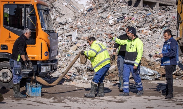 “Şehrin 3’te 2’sinin su kaçaklarını önledik”Demirci, ”Buradaki amacımız şehre suyu vermek. Geçtiğimiz günlerde suyu verdik. Şu an şehirdeki tüm merkez bölgelerde suyumuz var ancak temel sorunumuz verdiğimiz suyun basıncını artırmak. En büyük su kayıplarının yaşandığı yerler enkazın altında. Bunları bulmakla mücadele ediyoruz. Buldukça da kapatıyoruz. Ekiplerimizin bir bölümü onarım çalışması yaparken bir bölümü de tespit çalışmasını sürdürüyor. Şehrin 3’te 2’sinin su kaçaklarını önledik. İki güne kadar şehrin su kaçaklarını bitireceğiz” ifadelerini kullandı.“Sadece su sorunu için burada değiliz”Deprem bölgesinde görevli ekiplerin canla başla tüm çalışmalara destek verdiğini söyleyen Demirci, “Biz sadece su sorunu için burada değiliz. Su kaçaklarının yanı sıra enkaz kaldırma çalışmalarına da destek veriyoruz. İZSU ekibi olarak vatandaşların acılarını paylaşıyoruz. 30 kişilik bir ekiple enkazda çalışıyoruz. Kendi ekibimizle 3 can kurtardık. Uzak ilçelerde gıda, giyim ve çadır yardımı yapıyoruz. Çadır yaşam alanlarımızda da vatandaşlarımızın temiz suya ulaşmasını sağlıyoruz. Su bağlantısı yapamadığımız yerlerde 10 tankerimizle susuz bırakmıyoruz” ifadelerini kullandı.