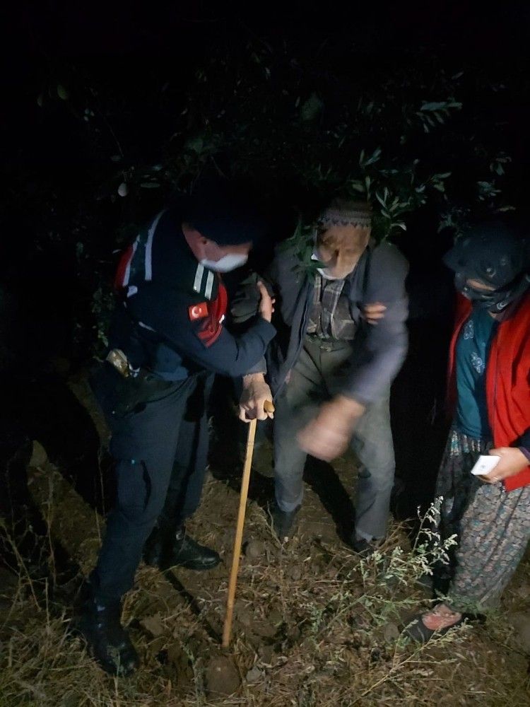 Yakınlarının durumu jandarma ekiplerine bildirmesiyle arama çalışmaları başladı. Aliağa İlçe Jandarma Komutanlığına bağlı asayiş timleri, 88 yaşındaki adamı Kadıncık mevkiinde bir hendek içerisine düşmüş ve bitkin halde buldu. Yaşlı adam, yapılan sağlık kontrollerin ardından ekipler tarafından ailesine teslim edildi.