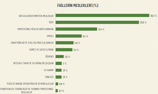 Kadın cinayetlerinde faillerin yüzde 86.5’inin daha önce hiç suç işlememiş olması, işledikleri cinayetlerin de yüzde 63 oranında “eş” ve “sevgilileri” olması durumu da ayrıca dikkat çeken istatistikler arasında. Yakalanan katiller üzerinde yapılan sorgulamalar ve psikolojik analizler, faillerin cinayetleri işleme gerekçelerinin yüzde 55.6’sı psiko-sosyal nedenlerden meydana geldiği görülmekte.