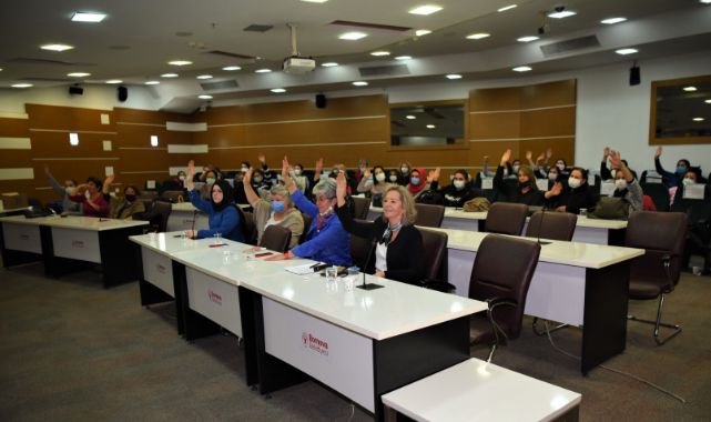 Toplantıda yaptığı konuşmada kooperatifin içinde 3 ana kelime bulunduğunu ifade eden Başkanı İduğ,” Girişim, üretim ve işletme 3 temel unsur. Kooperatifin büyüyüp gelişmesini, daha büyük üye sayılarına ulaşmasını istiyoruz. Üretim konusunda ekonomik olarak zor bir süreçten geçiyoruz. 2022 yılda daha da zorlaşacak. Bunun için artık evlerimizde kendi tüketeceğimiz bazı şeyleri üretmemiz gerekiyor. Biz bunun için kadınlara yönelik ekmek, turşu, peynir, reçel, tarhana yapımı gibi eğitimler düzenliyoruz. Bu sayede kadınların aile ekonomisine katkı koymasını istiyoruz. Biz bornova belediyesi olarak üretim için sizlerden gelen isteklere her zaman destek olacağız” dedi. Satış için yeni projelerİşletme konusuna da değinen başkan İduğ, “Kooperatif olarak ürettiklerinizi paraya dönüştürebilmeniz için her zaman sizlerin yanında yer alacağız. Biz eğer kadınlarımızı üretime, istihdama davet ediyorsak onların yeteneklerini sergileyebilecekleri alanları da yaratmalıyız. Bu amaçla Uğur Mumcu Kültür Merkezi’nin karşısına beşli bir stant açarak yıl boyunca burada satış yapmanızı sağlamak istiyoruz. Ayrıca ilçenin farklı noktalarında da satış yapabilmeniz için sizlere gezici bir araç tahsis etmeyi planlıyoruz” diye konuştu. Belediyeye teşekkürBornova Belediye Başkanı Dr. Mustafa İduğ’un göreve geldiği günden bu yana her zaman yanlarında bulunduğunu belirten Kooperatif Başkanı Hürriyet Yıldız da, kadınlara müjde vererek, “Bornova Belediyesi’nin yaptığı destekler sayesinden mutfağımız çok kısa zaman içinde gıda üretimlerine başlayacak. Emeği geçen herkese çok teşekkür ederiz” dedi. Yeni Yönetim belli olduBornova Kadın Girişim ve İşletme Kooperatifi 2021 yılı Olağan Genel Kurulu’nda yeni Yönetim ve Denetim Kurulu üyeleri belirlendi. Yıl boyunca yapılan çalışmaların anlatılması ile başlayan toplantıda yapılan oylama ile Mevcut Kooperatif Başkanı Hürriyet Yıldız güven tazeleyerek yeni dönemde de Başkan seçildi. Yönetim Kuruluna Necla Coral Başkan Yardımcısı, Hacer Varlık’ta Muhasip Üye olurken, Denetim Kurulu Başkanlığı’na Tuğba Çolmabey, Başkan yardımcılığına Ayşe Kayalı, Muhasip Üye ise Şükran Tanyel seçildi.