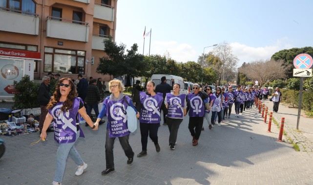 Efes Selçuk Belediyesi ve Efes Selçuk Kadın Platformu iş birliğiyle “Direnen ve Üreten Kadınlar” teması ile düzenlenen etkinlikler kapsamında 8 Mart Dünya Emekçi Kadınlar Günü’nde Atatürk Anıtı önünde bir araya gelen kadınlar Kadın Zinciri oluşturarak sloganlarla Cumartesi Pazarı’nda yürüdüler.