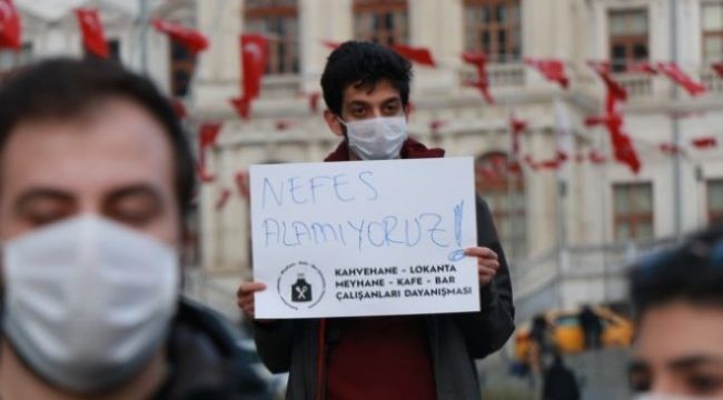 Bursa’da da kafe, bar ve restoran çalışanları ile müzisyenler eylemlerdi. Yeni Türkü’nün ‘Aşk Yeniden’ şarkısının sözlerini değiştiren müzisyenler iş yerlerinin açılmasını istediler.