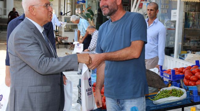 Başkan yardımcıları Ceyhan Kayhan ve Y.Güven Güngörmüş ile birlikte Yeşilyurt bölgesindeki esnafı dolaşan ve onlara hayırlı işler dileyen Başkan Selvitopu, vatandaşlarla da bol bol sohbet ederek bayrak dağıttı.
