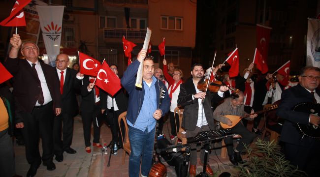 Selvitopu konserin finalinde İzmir Marşı’nı vatandaşlarla birlikte okuyarak coşkuya ortak olurken, konser sonrası Yakamoz Işıltıları Türk Müziği Korosu’nu ve Dernek Başkanı Halim Akın’ı organizasyon için kutladı.