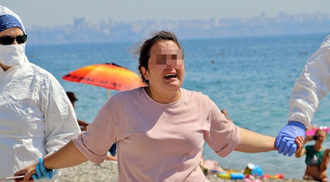 Polisi ve sağlık ekiplerini alarma geçiren olay dünyaca ünlü Konyaaltı Sahili'nde meydana geldi. Çocuğuyla birlikte sahile gelen Dilek M. (31), yanındaki bavulda bulunan eşyaları etrafa saçmaya başladı. Bu sırada, ‘hastayım, ölmek istemiyorum' diye bağıran Dilek B., iddiaya göre sahilde etrafa tükürmeye başladı. Sahilde kısa süreli panik oluşurken durum polis ve sağlık ekiplerine bildirildi.