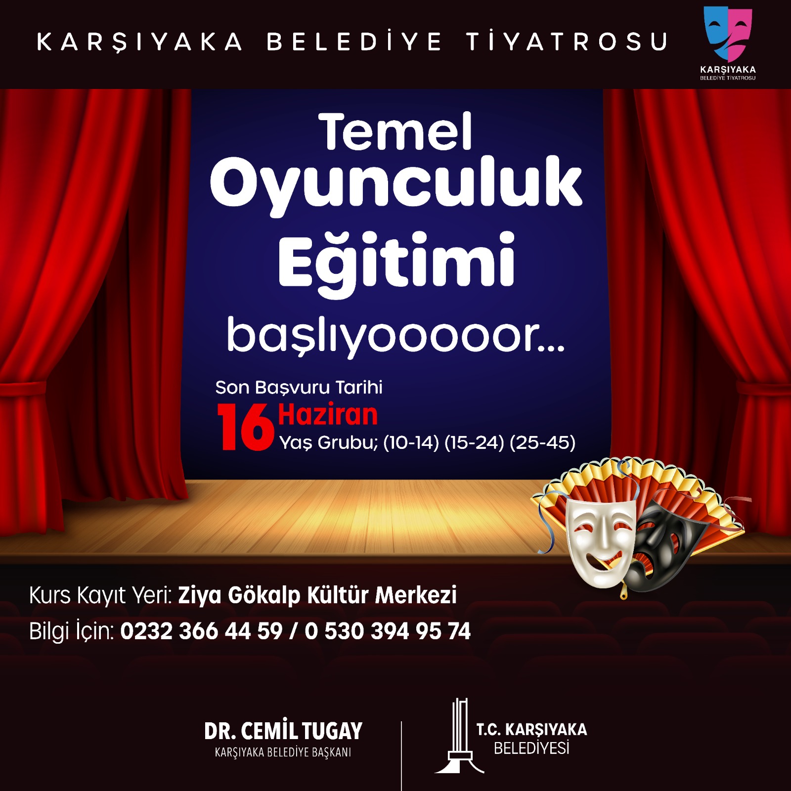 Kayıt almaya başlayan Karşıyaka Belediye Tiyatrosu’nda kurslar 3 Temmuz’da ilk dersini yapacak. Kurs kapsamında çeşitli yaş gruplarına yönelik temel oyunculuk üzerine eğitimler verilecek.
