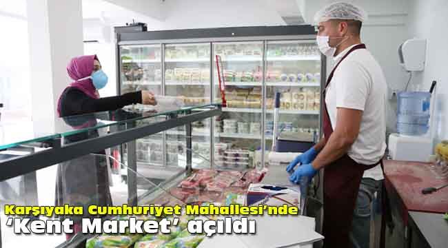 Karşıyaka Belediyesi iştirâki Kent A.Ş. tarafından kurulan ve hiçbir kâr amacı gütmeden, sosyal hizmet anlayışıyla işletilen Kent Market; Cumhuriyet Mahalle Muhtarlığı’nın yan tarafında yer alıyor. Market raflarında; Ege Bölgesi ve İzmir’de faaliyet gösteren çeşitli kooperatiflerden temin edilen güvenilir, doğal, sağlıklı ve kaliteli ürünler tüketiciyle buluşuyor. Kırmızı et, tavuk, bakliyat, sıvı yağ çeşitleri, şarküteri ile günlük süt ve süt ürünleri, bal ve peynir çeşitlerinin yanı sıra, Kent A.Ş tarafından üretilen köfte ve sucuk gibi ürünler de tesiste satışa sunuluyor.