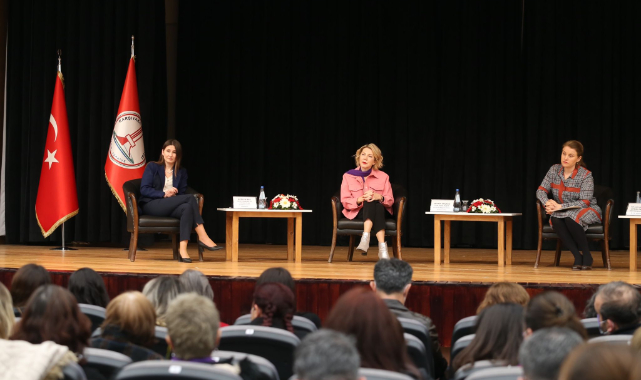 Çalıştığı kurumlardan ve meslek hayatından bahsederek sözlerine başlayan Öğr. Gör. Burçin Cepkenli Önder şöyle konuştu: “Mesleki ve teknik eğitimin Türkiye’yi kurtaracak güç olduğuna inanıyorum, o yüzden bir hayal ve ideal uğruna buradayım. Çok ilginç bir dönemden geçiyoruz, pandemi dijitalleşme hızımızı 5.3 yıl hızlandırdı. 8 milyar insanın 3 milyarı dijital gözlem altında, her gün yaşantımızın yüzde 40’ı veriye dönüşüyor. Algoritmalar altın çağını yaşıyorlar ve biz davranışlarımızla büyük verinin bir parçasıyız, algoritmalar davranışlarımızı takip etmiyor, yön veriyor. O yüzden artık davranışların interneti gibi bir döneme girdik. Artık internet 3.0, sanal gerçeklik ile arttırılmış gerçekliğin karıştığı “mix” gerçeklik ortamında, fiziksel bir platforma dönüştü ve biz içinde bulunduğumuz internet platformunun sahibiyiz. Bütün bu değişimin gençlerimiz neresinde? Okullarda eğitim sistemi bu değişime adapte olabilecek öğrenciler yetiştirebiliyor mu? Dünya bu kadar küreselleşti, sınırımızın ötesinde savaşlar devam ediyor, küreselleşmeden bahsedebilmek mümkün değil. Pandemi dönemi ve sonrası yapılan bütün testler şunu gösteriyor; Türkiye’deki kadınların yüzde 86’sı kaygı duyuyor. Korkudan çok daha kuvvetli bir duygudur kaygı çünkü kaygı bizi paralize eder. Türkiye’de kadınların yüzde 35’i sokakta yürürken kendini güvende hissetmiyor. Peki o zaman ne yapmak gerekiyor? Daha güçlü kadınlar, daha güçlü genç kızlar yaratmamız gerek. Bir araştırma da hayal fukarası olan bir millet olduğumuz ortaya çıktı ve orada ergenlere, yetişkinlere sorduğunuzda en büyük hayalleri evlenmek. Çünkü evliliği ne yazık ki özgürlük olarak görüyorlar. Biz gençlerimizin ve genç kadınlarımızın bireyselleşme, bireyselleştiği zaman özgürlüğünü kazanacak kaslarını geliştirmedik. O yüzden de kaygılılar. O yüzden “Burçin Hanım ve Kızları” doğdu. Kadınların kaslarını çok hızlı geliştirmemiz lazım. Yaklaşık çeyrek asırdır hayatımı daha nitelikli genç kızlar, hayali evlenmek değil üretmek, bireysel olarak var olabilecek genç kadınlar yetiştirmek için bu yola adadım.”