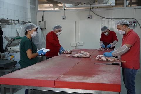 Kent A.Ş. et Üretim Tesisi’nde covid-19 sonrası alınan önlemler hakkında konuşan Veteriner Hekim Selin Kulaksız “Korona dönemi dışında da et üretim tesislerinde dezenfeksiyona ve hijyene çok önem verilmelidir. Tesisin içi 12 derece veya altında olmalıdır. Korona döneminde et üretim tesisimizin girişine hijyen bariyerleri yerleştirdik ve ateş ölçümü yaptık. Çalışan arkadaşlarımız; kolluk, eldiven, bone maske ve siperlik ile çalışmalarına devam ettiler. Rutin kullanımın dışına çıkarak, etlerin parçalanması ve vakumlanması sırasında sürekli olarak eldiven değişimi yapıldı. Günlük iki olan tesis dezenfeksiyonunu dörde çıkardık.” dedi. Kent A.Ş. Et Üretim Tesisi’nin İzmir İl Tarım ve Orman Müdürlüğü’ne bağlı olduğunu vurgulayan Selin Kulaksız “İlçe Tarım Müdürlüğü tarafından korona virüs sonrası yapılan denetimlerde, Müdürlük yetkilileri aldığımız önlemler için teşekkürlerini ilettiler.” dedi.