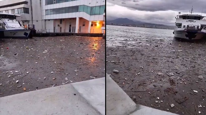 Karşıyaka İskelesi bölgesinde deniz suyu kirlilikten görülemez hale geldi. Diğer yandan suyun da çekilmesi sonucu bir vapurun iskele önünde karaya oturduğu görüldü.