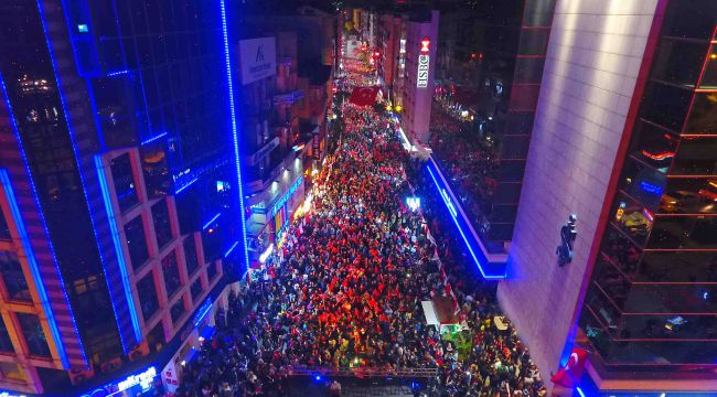 Kalabalığın Karşıyaka Vapur İskelesi karşısındaki etkinlik alanına ulaşması ile birlikte coşku zirveye çıktı. Belediye Orkestrası’nın verdiği mini konserin ardından, Karşıyaka Belediye Başkanı Hüseyin Mutlu Akpınar sahneye çıkarak, binlerce Atatürk sevdalısı ile hep bir ağızdan Andımız’ı okudu. Akpınar, daha sonra İzmir Marşı’nda da bateri çalarak orkestraya eşlik etti. Alanı dolduranlar, Atatürk devrimlerine ve Cumhuriyet kazanımlarına bağlı kalacaklarını haykırdı.