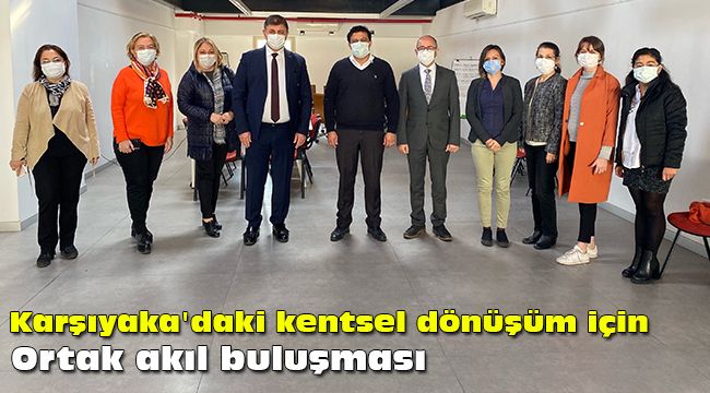 Düzenlenen ortak akıl toplantısına Karşıyaka Belediye Başkan Yardımcısı Zeki Yıldırım, İmar Müdürü Semra Köroğlu, Kentsel Tasarım Müdürü Özlem Kocaer ve beraberindeki ekip katıldı.