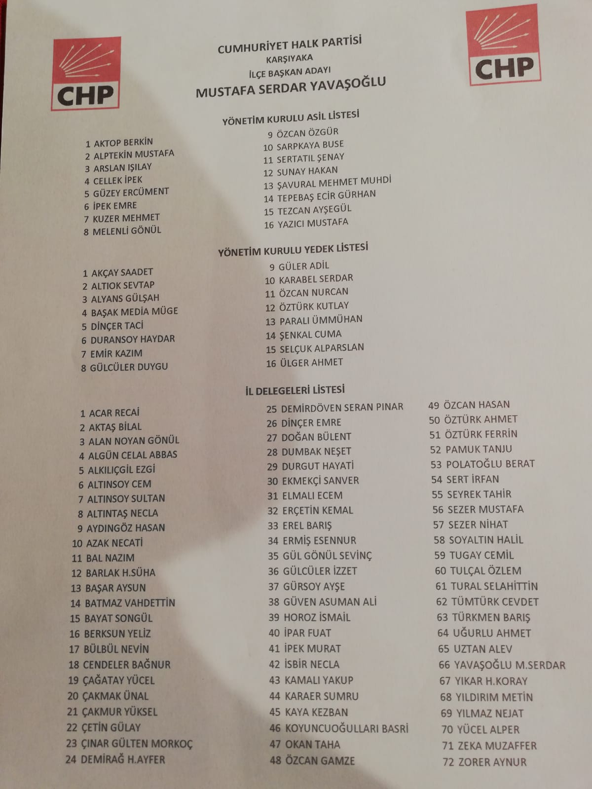 Mustada Serdar Yavaşoğlu'nun listesi;