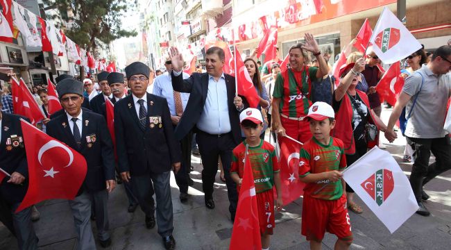 Karşıyaka Belediyesi tarafından, 1912 karşıyaka Derneği işbirliğinde “Ay-Yıldız Var Göğsümüzde” sloganı ile düzenlenen etkinlikler, Anayasa Meydanı’ndaki törenle başladı. Alanı dolduran yüzlerce Karşıyaka sevdalısı, Atatürk’ü bir kez daha saygı ve minnetle andı. Törenin ardından, Latife Hanım Köşkü’nün bahçesinde, Ata’nın KSK’yi ziyareti sırasında çekilen fotoğrafın canlandırılması da konuklara duygu dolu anlar yaşattı.