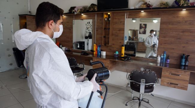 Kemalpaşa'da berber ve kuaförler dezenfekte ediliyor