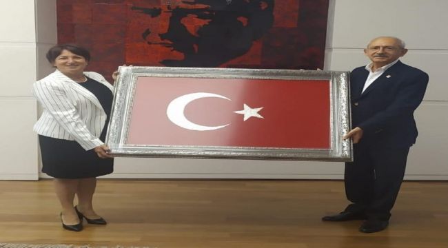 Başkan Erdoğan’ın hediye ettiği bayrağı çok beğenen ve kimin tarafından işlendiğini öğrenen Cumhuriyet Halk Partisi Genel Başkanı Kemal Kılıçdaroğlu, Karaburun’a bağlı Kösedere Köyü’nde ikamet eden, bayrağı işleyen 77 yaşındaki Şerife Zorlu’ya telefonla ulaşarak teşekkürlerini iletti.
