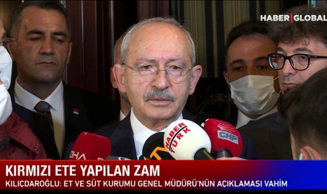CHP lideri Kılıçdaroğlu, dün akşam sosyal medya hesabından yaptığı paylaşımda, çocukların beslenme hakkının korunmasını konuşmak üzere Et ve Süt Kurumu'ndan randevu istediğini belirtmişti.“Herhalde bir yerlerden izin alamadılar ki ses yok” diyen Kılıçdaroğlu, bugün saat 10.00'da Et ve Süt Kurumu'na gideceğini açıklamıştı.CHP lideri, ''Evlatlarımızın beslenme hakkını konuşmak için saat 10.00’da devletimizin şerefli bürokratlarına gideceğim. Gerisi onlara kalmış” paylaşımında bulunmuştu.Kılıçdaroğlu daha önce de Merkez Bankası'nı ziyaret ederek Merkez Bankası Başkanı Şahap Kavcıoğlu ile görüşmüştü.