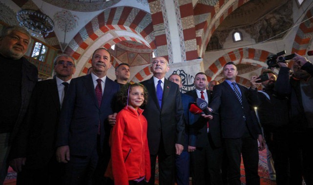 Millet İttifakı'nın Cumhurbaşkanı Adayı ve CHP Genel Başkanı Kemal Kılıçdaroğlu, Edirne'de Eski (Ulu) Cami'ye ziyarette bulundu.Kılıçdaroğlu, partililer tarafından Edirne otoyol gişelerinde karşılandı.Konvoyla Eski Cami'ye gelen Kılıçdaroğlu, caminin avlusundaki hat yazılarını inceledikten sonra beraberindekilerle camiye girdi.Eski Cami Müezzini Hasan Cerrah, cami hakkında Kılıçdaroğlu'na bilgi verdi.Caminin avlusunda bekleyen yurttaşlar çıkışta Kılıçdaroğlu'nu alkışlayarak "Cumhurbaşkanı Kılıçdaroğlu" şeklinde seslendi.Bir vatandaşın Mustafa Kemal atatürk benzetmesi üzerine Kılıçdaroğlu, "Aman aman, Atatürk büyük adam" yanıtını verdi.Kılıçdaroğlu, Balkan Türklerine selam söyleyen bir yurttaşa ise "Aleykümselam" dedi.Yurttaşlarla sohbet edip, fotoğraf çektiren Kılıçdaroğlu, Bulgaristan'daki programlarına katılmak üzere kentten ayrıldı.Kılıçdaroğlu'na ziyaretinde, CHP Genel Başkan Yardımcısı ve Parti Sözcüsü Faik Öztrak, Edirne Belediye Başkanı Recep Gürkan, Bilecik Belediye Başkan Vekili Melek Mızrak Subaşı, CHP Edirne İl Başkanı Samet Kahraman, CHP ve İYİ Parti Edirne milletvekili adayları ve partililer eşlik etti.