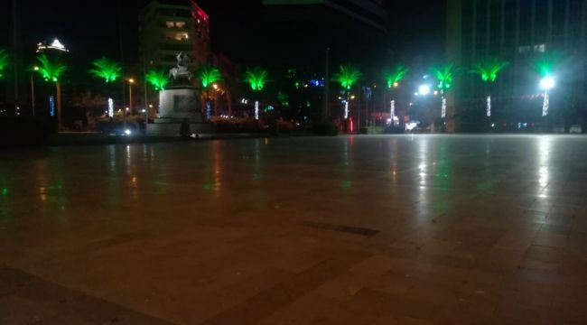 İçişleri Bakanlığı tarafından, korona virüs salgını tedbirleri kapsamında, İzmir'in de dahil olduğu 24 ilde hafta sonu için ilan edilen sokağa çıkma kısıtlaması başladı. Kısıtlamayla birlikte meydanlar, caddeler ve sokaklar boş kaldı.
