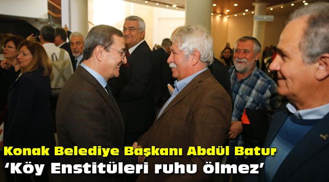 Konak Belediye Başkanı Adbdül Batur, ise köy enstitülerinin Türkiye Cumhuriyeti’nin sağlam temeller üzerinde kurulmasında çok büyük önemi olduğunu ifade ederek köy enstitüleri ruhunun kuruluşunun 80 yıl sonrasında bile halen sürdüğünü dile getirdi. Bugün ülkede yaşanan sorunların Köy enstitülerinin kapatılmasıyla olan ilişkisine dikkat çeken başkan Batur, “Açılan her köy enstitüsü Atatürk’ün devrimlerinin, ilkelerinin; sosyal demokrasinin, eşitliğin, paylaşımın ideolojisiydi. Baktılar ki genç cumhuriyetin sağlam temelleri köy enstitüleri sayesinde daha sağlam hale geliyor, istemediler, çareyi kapatmakta buldular. Bugün ülkemizde tarım can çekişiyorsa, çiftçi, köylü işçi dertliyse, işlemeyen demokrasi, adalet dağıtamayan hukuk sistemimizden şikayet ediyorsak sorumlusu 66 yıl önce köy enstitülerini kapatanlardır.” diye konuştu.