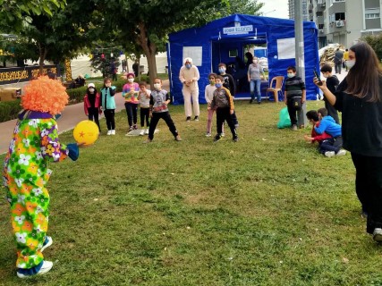 Oyun çadırının içindeki oyuncaklarla diledikleri gibi oynayan çocuklar, çadırın dışında da görevli ekip ve sevimli palyaçolar eşliğinde geleneksel sokak oyunları oynuyor. Çocuklar oyunların yanı sıra resim, el işi gibi etkinliklere de katılıyor.