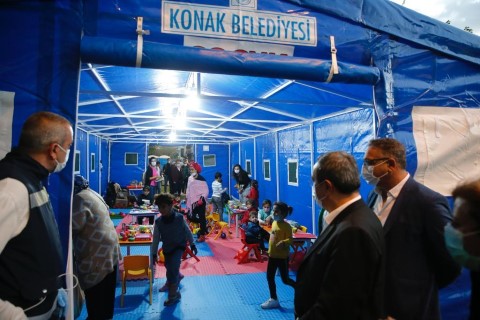 Oyun çadırını ziyaret ederek çocuklarla bir araya gelen Konak Belediye Başkanı abdül Batur, “Deprem felaketi hepimizi derinden etkiledi. Canlarımızı yitirdik, yaralılarımız var. Yaşanan korku ve endişe en çok da çocuklarımızı etkiledi. Onların yüzünün gülmesi için elimizden geleni yapıyoruz. Kurduğumuz oyun çadırlarında oyuna dalarak bir an bile olsa yaşanan felaketten uzaklaşıp yüzleri gülüyor. Çocukların yüzlerindeki gülümseme her şeye değer” dedi.
