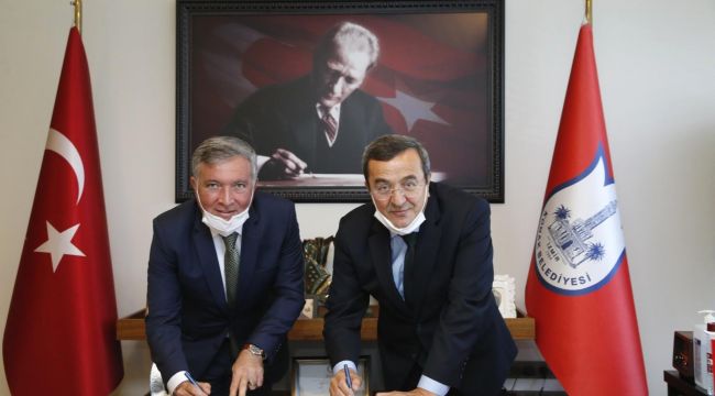 Konak Belediye Başkanı Abdül Batur, Honaz Belediye Başkanı Yüksel Kepenek’i makamında konuk ederek kardeş şehir protokolüne imza attı.