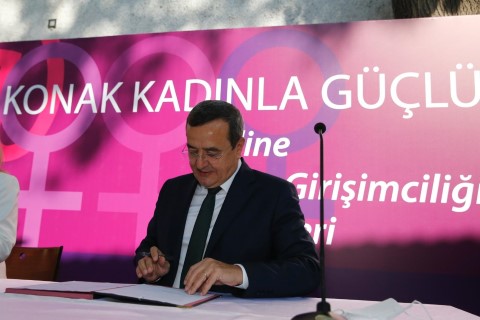İmza töreni öncesi konuşan İzmir Kadın Kuruluşları Birliği Başkanı Huriye Serter, kadın güçlendikçe, toplumun da güçleneceğini ve daha adil, daha barışçıl bir dünyanın da ancak böyle mümkün olabileceğini dile getirdi. Kadınların girişimcilik potansiyelinin çok yüksek olduğunu söyleyen Serter, dünya nüfusunun yarısının kadın olduğuna dikkat çekerek, “Ancak atıl bir şekilde kenarda duruyorlar. Onlara el uzatmak, cesaret vermek gerekiyor. Bu projenin hikâyesi de böyle başladı. Girişimciliği kadınlar açısından önemsiyoruz. Bizim gelecek hayalimiz, toplumsal cinsiyet eşitliğinin bir gün bu dünyada var olduğu görebilmek. Konak Belediye Başkanımız da aynı gelecek hayaliyle bizlerle birlikte yolculuğa çıktı. Bu projeyle adım attık, arkası da gelecek; çünkü kadınlarımızı daha da güçlenmiş olarak görmek istiyoruz” dedi.