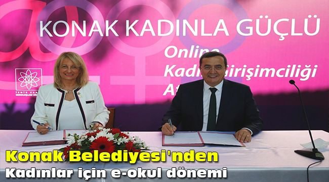 Konak’ta kadınlar için ‘e-okul’ dönemini başlatacak işbirliğinin protokolü, Konak belediyesi Basmane Semt Merkezi’nde düzenlenen törenle imzalandı. Protokole, Konak Belediye Başkanı abdül Batur ile İzmir Kadın Kuruluşları Birliği Başkanı Huriye Serter imza attı. Birliğe üye derneklerin yöneticileri de törene katıldı.