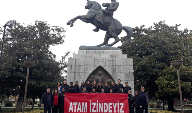 Konak Belediyesi Kadın Futbol Takımı, Turkcell Kadınlar Süper Ligi 2021-2022 sezonu devre arasına galibiyetle girdi. Samsun deplasmanında İlkadım Belediyesi Yabancılar Pazarıspor’u 2-1 mağlup eden mavi beyazlı ekip, maç sonrası, geçtiğimiz günlerde uğradığı çirkin saldırıyla gündeme gelen Atatürk Anıtı’nı ziyaret etti. Konak Belediyespor’un kadın futbolcuları “Atam İzindeyiz” yazılı pankart açarak Ulu Önder Mustafa Kemal Atatürk’e, başta Cumhuriyet olmak üzere bıraktığı eser ve değerlerine sahip çıkacaklarının sözünü verdi.