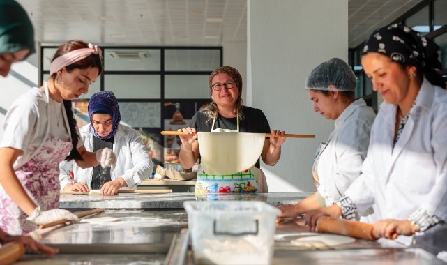 Konak Belediyesi ve İzmir Büyükşehir Belediyesi Meslek Fabrikası işbirliğiyle düzenlenen Geleneksel Hamur Ürünleri Yapımı Kursu ilk mezunlarını verdi. Kursu başarıyla tamamlayan katılımcılara sertifikalarının verildiği törende konuşan Başkan Mutlu, “Kadınların, iş hayatının, üretimin içinde olması ve kendi ekonomik özgürlüğüne kavuşması gerektiğine çok inanıyoruz. Konak’ta her kadının görünür olduğu, güçlü olduğu ve ayaklarının üzerinde durduğu bir kent hayal ediyoruz” dedi.