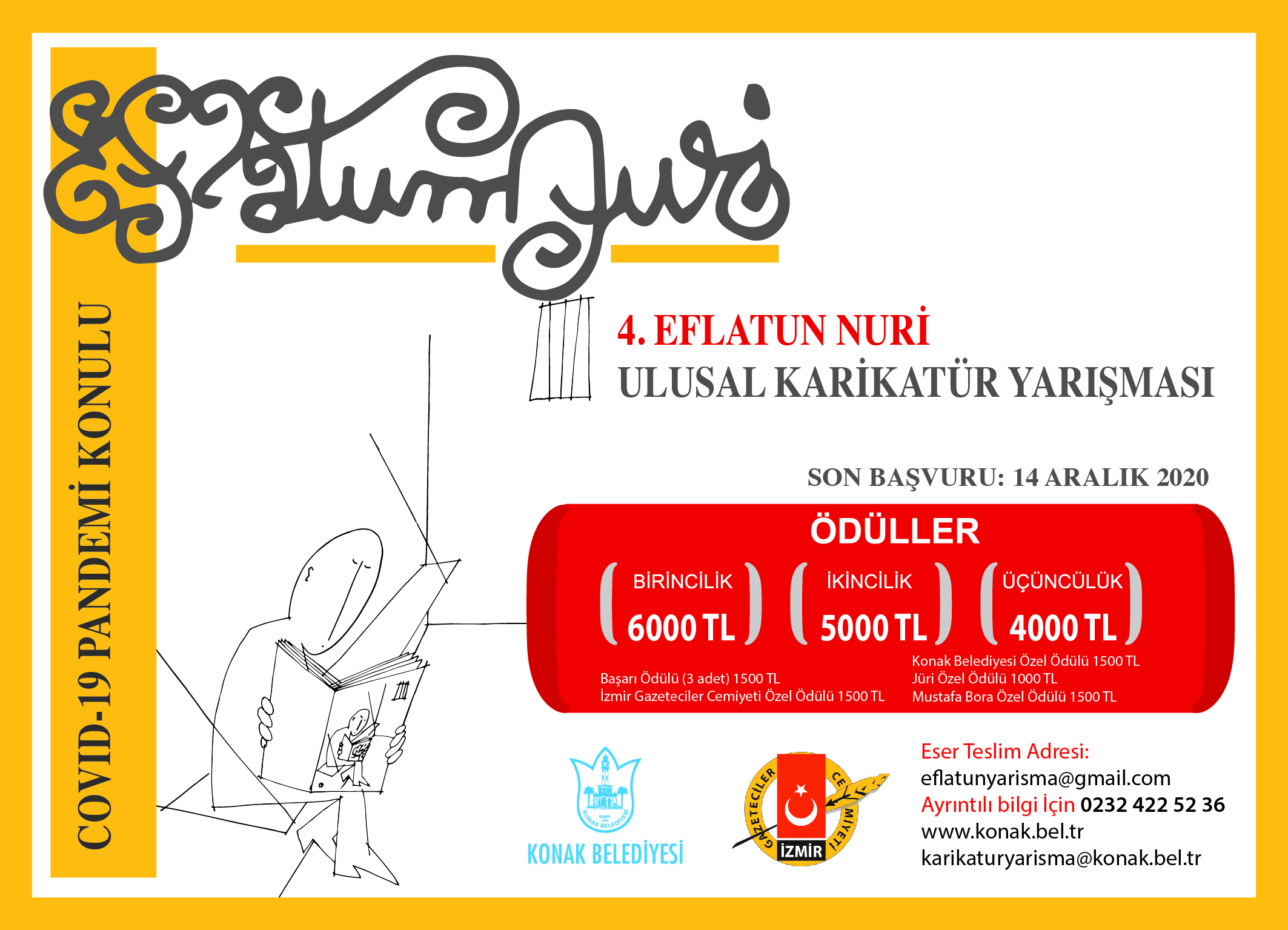 Türk karikatürünün büyük ustalarından olan Eflatun Nuri anısına bu yıl dördüncüsü düzenlenen “Eflatun Nuri Ulusal karikatür Yarışması”nın konusu pandemi olarak belirlendi. yarışma konusunu her yıl titizlikle belirleyen Organizasyon Komitesi, adeta yeni bir dünya düzeni yaratan covid-19 salgın hastalığı nedeniyle bu yılki yarışma konusunun “Pandemi” olması yönünde ortak bir karar vardı.