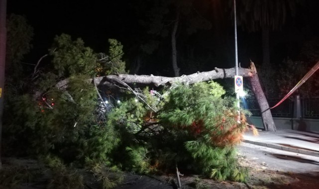 İzmir'in Konak ilçesinde yola devrilen çam ağacının tramvay tellerine zarar vermesinden dolayı seferler durdu. Devrilen ağaç itfaiye ekiplerince bulunduğu yerden kaldırılırken, yol trafiğe kapandı, tramvay seferleri durdu.