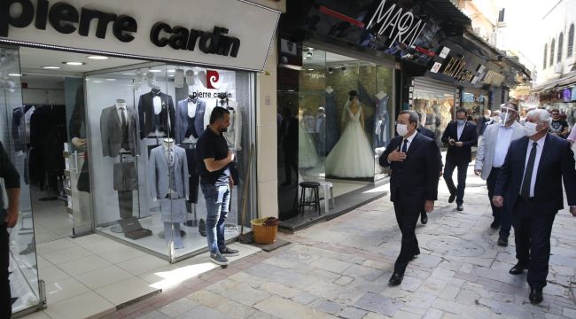Konak Belediye Başkanı Abdül Batur, CHP İzmir Milletvekili Ednan Arslan, CHP Konak İlçe Başkanı Çağrı Gruşçu, İzmir Esnaf ve Sanatkarlar Odası Başkanı Zekeriya Mutlu, Tarihi Kemeraltı Esnaf Derneği Başkanı Semih Girgin ve belediye meclis üyeleriyle birlikte Kemeraltı Çarşısı’na giderek uzun bir aranda sonra dükkanlarını açan Çarşı esnafını ziyaret etti. Covid-19 salgını için alınan önlemler kapsamında uzun süredir kapalı olan Kemerlatı Çarşısı ile berber ve kuaförler 11 Mayıs tarihinde yeniden çalışmaya başladı. Çarşı esnafını ilk iş ünlerinde yalnız bırakmayan Başkan Batur, yeni dönem için esnafa hayırlı olsun dileklerini iletti.