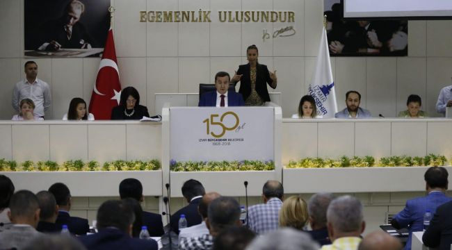 Başkan Batur’un konuşmasının ardından CHP Grup Başkan Vekili Mahmut Esat Aslan söz alarak, İzmir’in yüreğini yakan orman yangınlarının ardından kentte başlayan terörün kınanması tartışmalarına son noktayı koyacak bir bildiri okudu. Aslan’ın okuduğu bildiride, “Bizler bu meclis çatısı altında parti kimliklerimizin de üstünde Türkiye Cumhuriyeti, Türk Milleti ve İzmir Halkı için sorumluluk almış, halkımızdan vekâlet alarak bu koltuklara oturmuş meclis üyeleriyiz. Kuruluş amacı Cumhuriyetimizi yıkmak, devletimizin bekasına, askerimizin, polisimizin, halkımızın canına kast etmek olan, toplumsal birliğimizi, kardeşliğimizi ve huzurumuzu hedef alan hangi terör örgütü varsa İzmir adına, halkımız adına kınamak ve lanetlemek bizlerin gurur duyacağı onur duyacağı ilkeli bir harekettir” denildi.