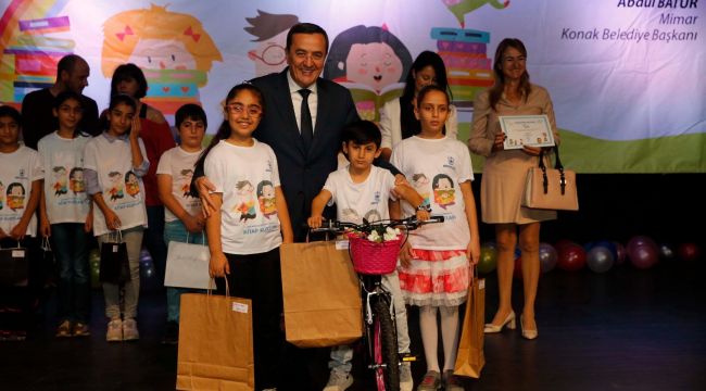 Konak Belediye Başkanı Abdül Batur, konuşmasının ardından her Semt Merkezinin birincisine bisiklet hediye ederken, ikici ve üçüncü olan minik kitap kurtlarına da sivil toplum kuruluşlarının temsilcileri çeşitli hediyeler verdi. Minik kitapseverler tören sonunda Şubadap Müzik Grubu’nun şarkıları eşliğinde ve animasyon etkinlikleriyle doyasıya bir gün yaşadı.