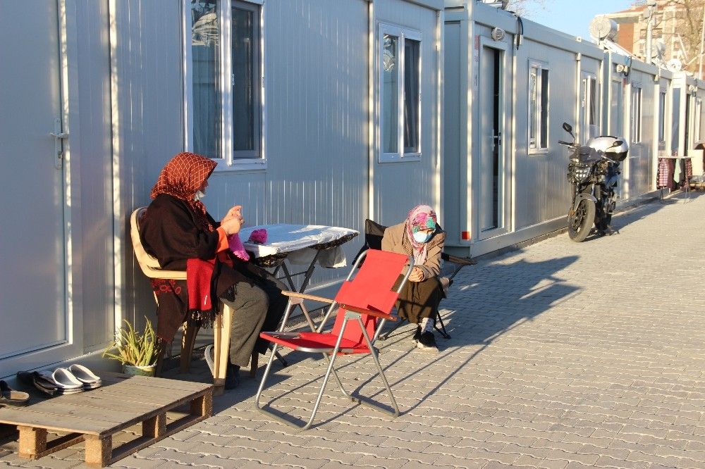 Arife Topuz isimli depremzede, "Depremden sonra bir ay çadırda kaldık, sonra konteyner kente geldik. Biz apartman görevlisiydik. Evimiz orta hasarlı çıktı. Şimdi konteyner kentte kalıyoruz. Her gün yürüyüşe gidiyorum, akşamüstü de hava güzel olunca kapı önünde örgü örüp vakit geçiriyorum" dedi. Burçin Güzeycan isimli ikiz babası ise, "Evimiz hasarlı olduğu için 3 aydır konteyner kentte yaşıyoruz. Allah devletimizden razı olsun. Günümüz güzel geçiyor. Çocuklarımızı parka çıkarıyoruz, komşularımızla sohbet ediyoruz" diye konuştu.