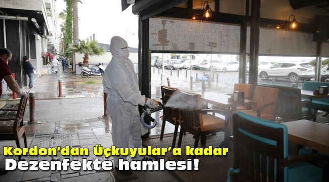Pandemi sürecinde sağlık kuruluşları, eğitim kurumları, berberler, kuaförler, sürücü kursları vb. özel ve kamuya ait pek çok işyerini düzenli aralıklarla dezenfekte eden Konak Belediyesi ekipleri, İçişleri Bakanlığı’nın yayınladığı genelge uyarınca, 1 Haziran 2020 tarihi itibariyle yeniden hizmet vermeye başlayan restoran ve kafeleri de dezenfekte etmeye başladı. Konak Belediyesi Temizlik İşlerine bağlı dezenfeksiyon ekipleri, ilk etapta Alsancak Liman Bölgesinden başlayarak Kordon’dan Üçkuyulara kadar olan sahil şeridindeki restoran ve kafeleri dezenfekte etti.