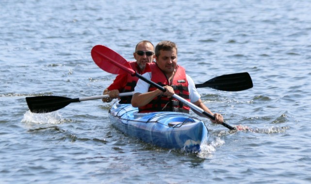 İzmir Büyükşehir Belediye Başkanı Tunç Soyer’in sporu toplumun her kesimine yayma ve özellikle engellilerin spor yapmasını sağlama hedefiyle hareket eden İzmir Büyükşehir Belediyesi, bu yıl beşincisi düzenlenen körfez Festivali’nde görme engelliler için de kano yarışları düzenledi.İzmir Körfezi üç günlük etkinlikte rüzgarla dans eden yelkenlerin ve sporcuların yarışlarına sahne olurken ilk kez düzenlenen görme engelli kano müsabakaları da büyük ilgi çekti. Pasaport İskelesi ile Konak Pier arasındaki parkurda, arkasındaki yönlendirici ile start alan görme engelli kanocular, 200 metrelik yarışı başarıyla tamamladı. Yönlendiriciler adeta “Denizin gözleri” olurken, görme engelli sporcular da ilk kez öylesine büyük bir organizasyonda yarışmanın heyecanını yaşadı.İzmir Büyükşehir Belediyesi Gençlik ve Spor Hizmetleri Dairesi Başkanı Hakan Orhunbilge, 1 Temmuz Kabotaj Bayramı ile birleşen Körfez Festivali’ni artık uluslararası boyuta taşıyacaklarını belirterek, “İzmir Büyükşehir Belediye Başkanımız Sayın Tunç Soyer’in bu yönde bir isteği var. Hazırlıklara erkenden başlayıp çok daha büyük bir organizasyonla İzmirlilerin karşısında olacağız” dedi. Görme engelli kano yarışlarının büyük ilgi gördüğünü ifade eden Orhunbilge, “İlk kez düzenlediğimiz görme engelli kano yarışlarını ve büyük beğeni toplayan kumandalı tekne yarışlarını da büyüteceğiz” diye konuştu.