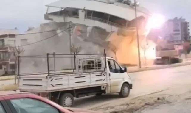 Kahramanmaraş'ta 6 Şubat'ta meydana gelen 7.7 ve 7.6 şiddetindeki depremler sonrası Adıyaman merkez Yeni Mahalle 3. Çevre Yolu üzerinde bulunan bir binanın acil yıkılması kararı alındı.5 katlı binanın yıkımı esnasında bina aniden çöktü. O anlar cep telefonu kameralarına yansırken çökme sırasında bölgeden geçen elektrik tellerinin binanın üzerine devrildiği ve elektrik akımının kapatılmadığı anlaşıldı.Binanın tamamen çökmesiyle birlikte iş makineleri de tozların arasında kayboldu.