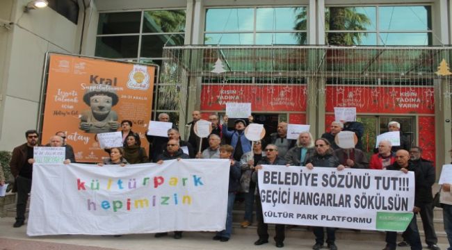 Kültürpark Platformu üyeleri, Kültürpark’ta devam eden tahliye çalışmaları kapsamında hangar yapıların da sökülmesini istedi. Platform üyeleri ayrıca, koruma amaçlı imar planının yapılması için yetkilere bir kez daha çağrıda bulundu.
