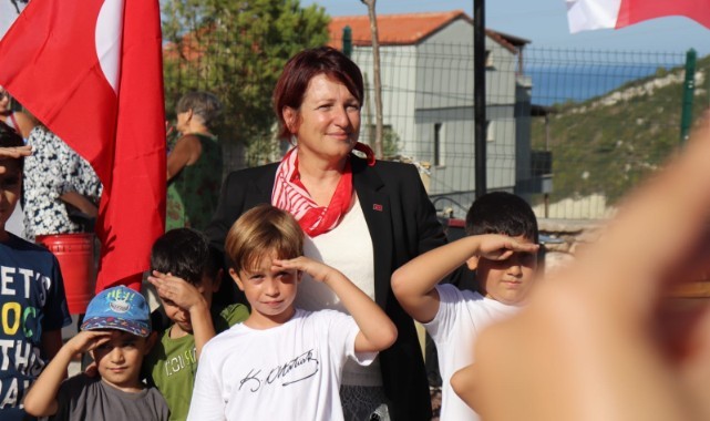 Karaburun Demokrasi Parkı’nın açılış kurdelasının kesilmesinin ardından Karaburun Kaymakamı Eyüp Kaykaç ve Belediye Başkanı İlkay Girgin Erdoğan çocuklarla bir araya gelerek sohbet etti.