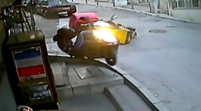İzmir'in konak ilçesinde meydana gelen kazada iki kurye kafa kafaya çarpıştı. Kazada bir kurye yaklaşık 4 metre ileriye uçarken, kaza anları çevrede bulunan bir marketin güvenlik kamerasınca saniye saniye kaydedildi.