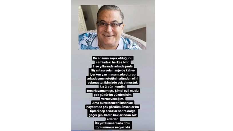 Klibinde oynadığı sosyal medya fenomeni Ece Ronay tarafından mesajları ve ses kayıtları ifşa edildikten sonra taciz suçlamasıyla şikayetçi olunan mehmet ali erbil hakkında yeni bir iddia gündeme geldi.Hakan Sabancı ile yaşadığı ilişkiyle tanınan Aygün Aydın, Erbil'in bir arkadaşını daha taciz ettiğini söyledi.Instagram hesabından bir paylaşım yapan Aygün, olayın lise yıllarında bir başka arkadaşının başına geldiğini söyleyerek şunları yazdı:"Lise yıllarında arkadaşlarımla kahve içerken arkadaşımın eteğinin altından elini sokmuştu. Şok olmuştuk kız 3 gün kendini toparlayamamıştı. Şimdi evli mutlu çok şükür."