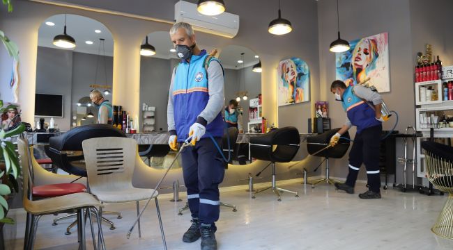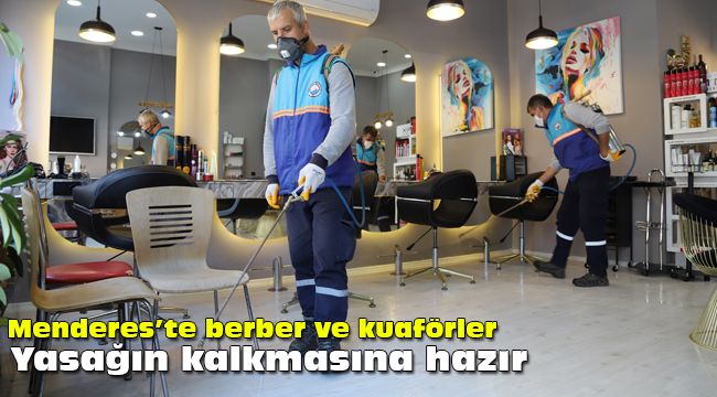 Menderes Belediyesi tarafından koronavirüs ile mücadele kapsamında gerçekleştirilen çalışmalar tüm hızıyla devam ediyor. Salgına karşı kurulan özel ekip dezenfektasyon çalışmalarını aralıksız sürdürüyor. Açıklanan genelge ile 11 Mayıs tarihinde yeniden faaliyete geçecek berber, kuaför ve güzellik salonlarında da dezenfektsayon işlemleri Menderes Belediyesi tarafından gerçekleştirildi.