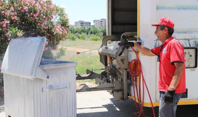 Menderes Belediyesi tüm çöp konteynerlerinin bakım, onarım, temizlik ve dezenfektesini özel ekip ile gerçekleştiriyor.