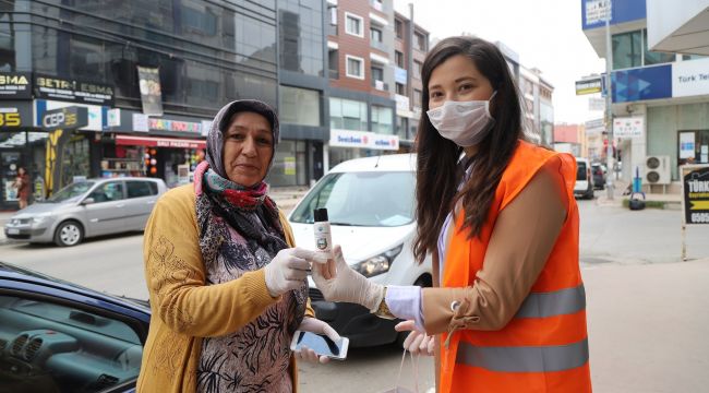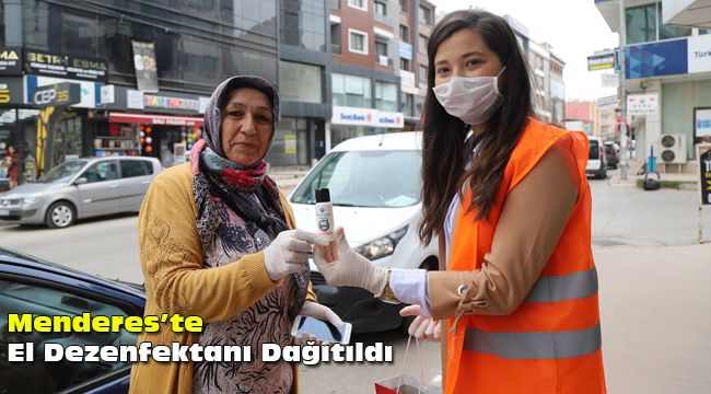 Menderes Belediyesi tarafından koronavirüse karşı yürütülen mücadele kapsamında esnaf ve vatandaşlara el dezenfektanı dağıtıldı.