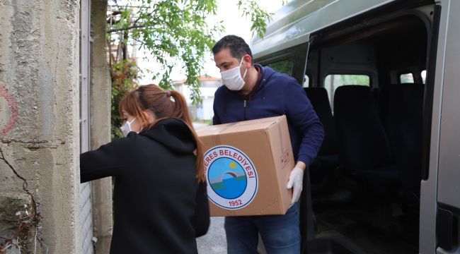 Menderes Belediyesi tarafından salgın sürecinde vatandaşlara gıda paketi desteği gerçekleştiriliyor.